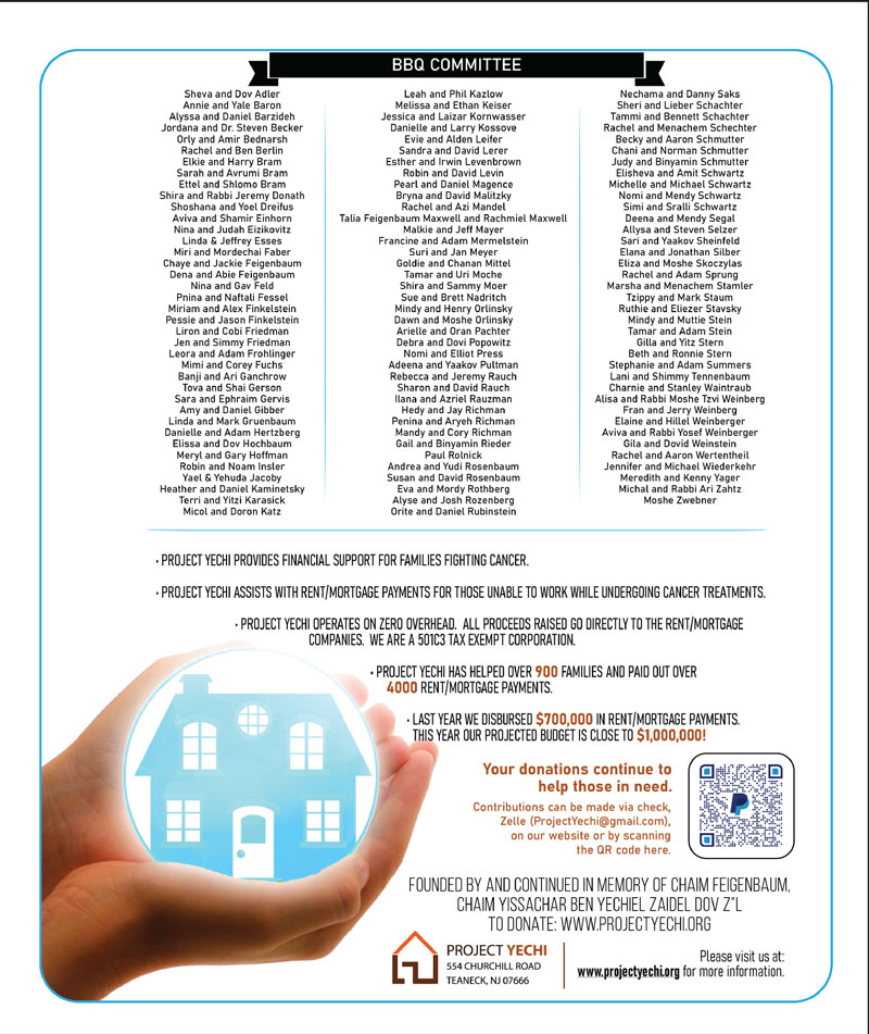 The Tablecloth Gemach and the Emunah Magnets are but a few of the charitable programs that Project Yechi is involved in.We’re excited to welcome back our annual Project Yechi BBQ